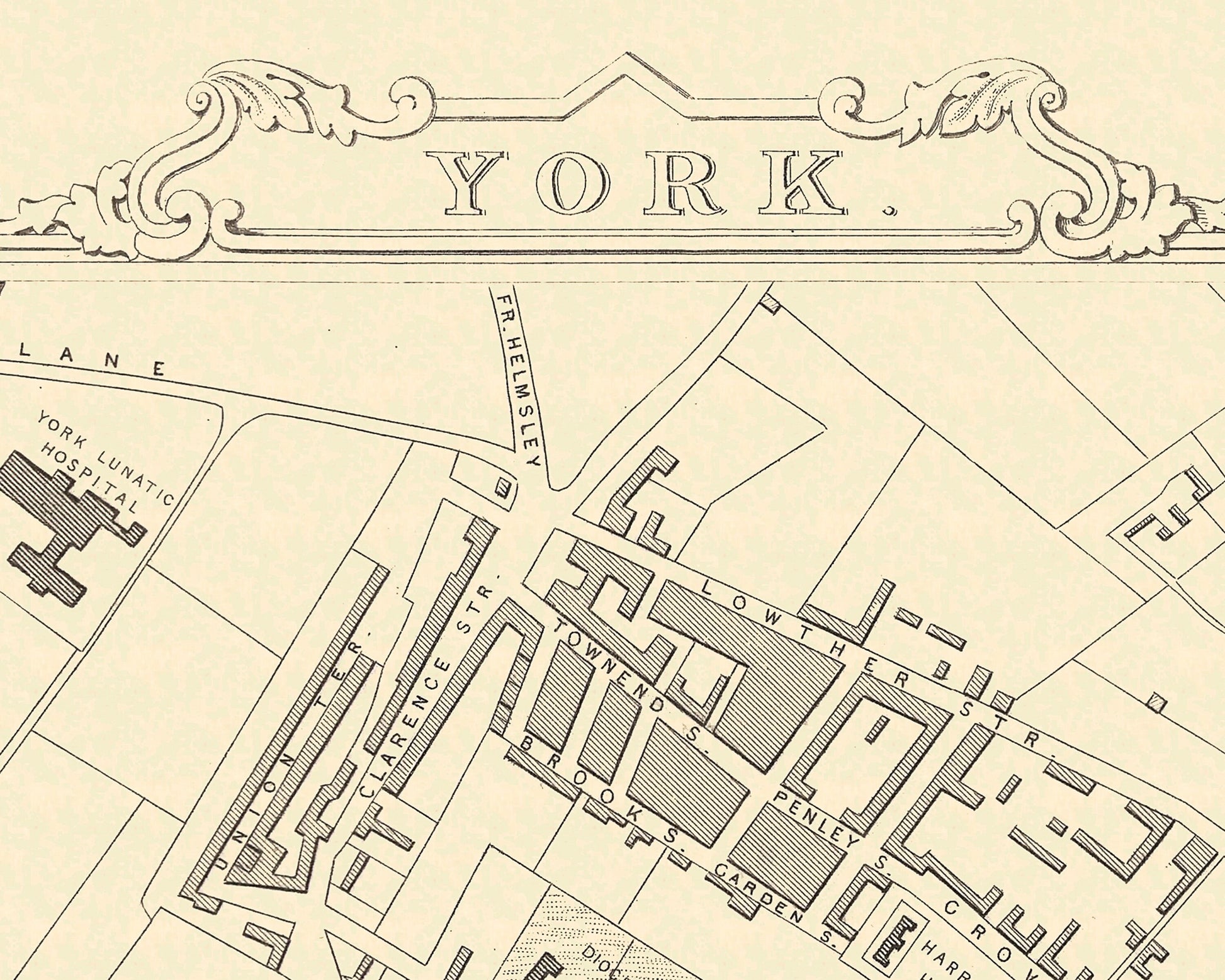 YORK Map 1851 John Tallis - York Minster Cliffords Tower River Ouse